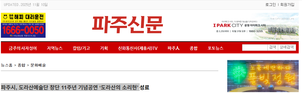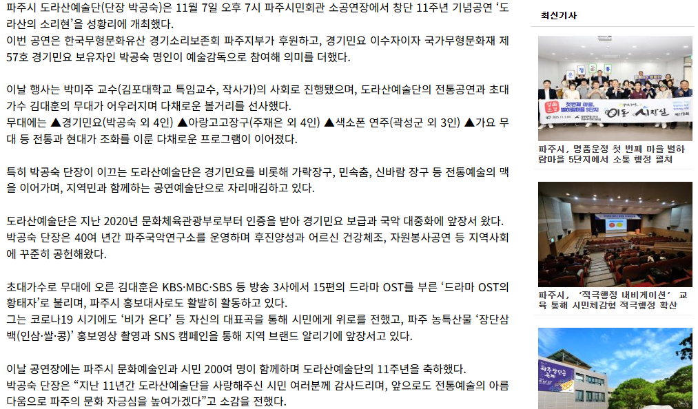 ÆÄÁÖ½Ã, µµ¶ó»ê¿¹¼ú´Ü â´Ü 11Áֳ⠱â³ä°ø¿¬ ¡®µµ¶ó»êÀÇ ¼Ò¸®Çö¡¯